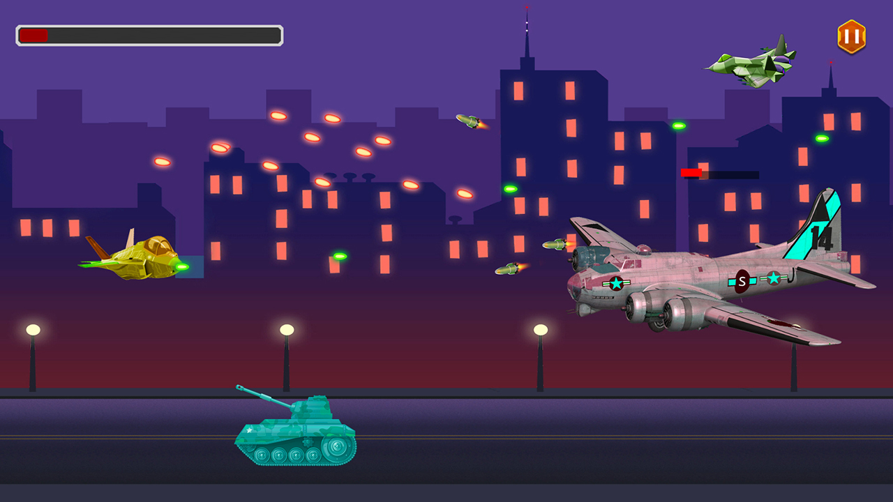 - Gain coins in every stage to upgrade your plane armor and gun